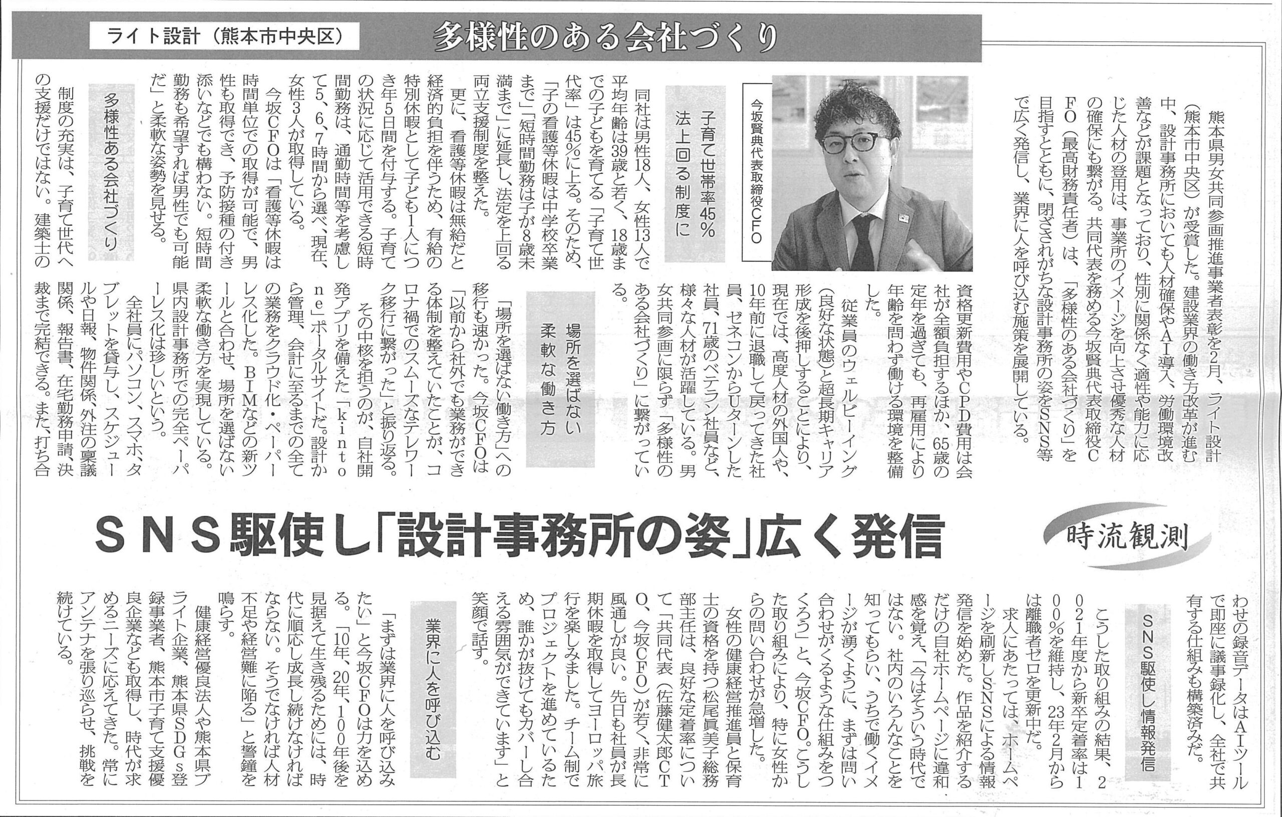 「西日本建設新聞」に弊社代表・今坂のインタビュー記事が掲載されました